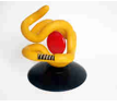 Модель представляет собой увеличенную молекулу белка из группы глобулинов. Модель отображает третичную структуру белка – глобулу, в виде толстого жгута, скрученного в клубок. Небольшая часть жгута, имитирующего нить аминокислот, вырезана, на этом участке модели представлена вторичная структура белка в виде спирали. Между витками вставлен округлый диск красного цвета – гем.
